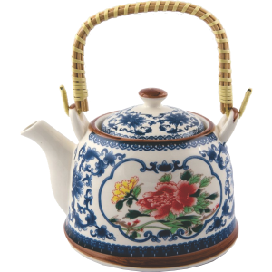 Tetera grande azul con peonias 900ml